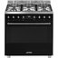 Газовая плита Smeg C9GMN9-1 — отличный выбор как для квартиры, так и для частного дома. Цвет корпуса черный, он гармонично сочетается с мебелью и техникой похожих оттенков, а также может интересно выглядеть на контрасте с ними. Для управления используется удобная и понятная электронно-механическая система. Благодаря ей выбирать режимы приготовления и настраивать параметры температуры очень просто. Основная информация о процессе отображается на дисплее. Переключатели не только выполняют техническую функцию, но и поддерживают общий дизайн; тип элементов: сенсорные + поворотные.