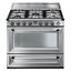 Устройства с тремя духовками также имеют один основной и две дополнительных шкафа разного объема: например, плиты Bertazzoni оснащены большой духовкой объемом 69 литров, средней объемом 54 литра и малой объемом 24 литра. Духовки располагаются в два ряда: две меньшие духовки в одном ряду, большая и ящик для посуды в другом.