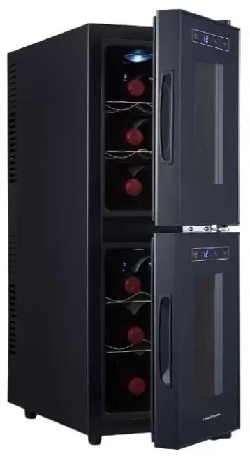 Две камеры в технике такого типа встречаются реже, чем в обычных холодильниках, эти приборы чаще всего предназначены для ресторанов или крупных коллекционеров. Охлажденный воздух поступает внутрь благодаря термоэлектрическому элементу. Размораживается автоматически, поэтому не нужно вручную удалять иней со стенок и поддерживать тем самым оптимальные условия. Общий диапазон температур, которые можно установить: 7-18 градусов.