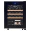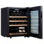 Стеклянная дверь — дополнительный изящный штрих к общему дизайну модели. Специальное покрытие защищает вино от влияния ультрафиолетовых лучей, которые проникают, если шкаф находится в солнечной комнате. Цвет корпуса — черный.