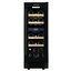 Стеклянная дверь — дополнительный изящный штрих к общему дизайну модели. Специальное покрытие защищает вино от влияния ультрафиолетовых лучей, которые проникают, если шкаф находится в солнечной комнате. Цвет корпуса — черный. Дверь можно перевесить на другую сторону, поэтому вариантов размещения его в доме становится больше.