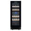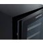 Стеклянная дверь — дополнительный изящный штрих к общему дизайну модели. Специальное покрытие защищает вино от влияния ультрафиолетовых лучей, которые проникают, если шкаф находится в солнечной комнате. Цвет корпуса — черный. Дверь можно перевесить на другую сторону, поэтому вариантов размещения его в доме становится больше.