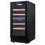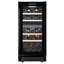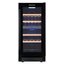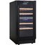Стеклянная дверь — дополнительный изящный штрих к общему дизайну модели. Специальное покрытие защищает вино от влияния ультрафиолетовых лучей, которые проникают, если шкаф находится в солнечной комнате. Цвет корпуса — черный. Дверь можно перевесить на другую сторону, поэтому вариантов размещения его в доме становится больше.