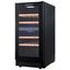 Стеклянная дверь — дополнительный изящный штрих к общему дизайну модели. Специальное покрытие защищает вино от влияния ультрафиолетовых лучей, которые проникают, если шкаф находится в солнечной комнате. Цвет корпуса — черный. Дверь можно перевесить на другую сторону, поэтому вариантов размещения его в доме становится больше.