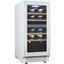 Стеклянная дверь — дополнительный изящный штрих к общему дизайну модели. Специальное покрытие защищает вино от влияния ультрафиолетовых лучей, которые проникают, если шкаф находится в солнечной комнате. Цвет корпуса — белый. Дверь можно перевесить на другую сторону, поэтому вариантов размещения его в доме становится больше.