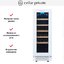 Стеклянная дверь — дополнительный изящный штрих к общему дизайну модели. Специальное покрытие защищает вино от влияния ультрафиолетовых лучей, которые проникают, если шкаф находится в солнечной комнате. Цвет корпуса — белый. Дверь можно перевесить на другую сторону, поэтому вариантов размещения его в доме становится больше.