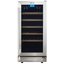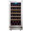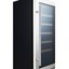 Стеклянная дверь — дополнительный изящный штрих к общему дизайну модели. Специальное покрытие защищает вино от влияния ультрафиолетовых лучей, которые проникают, если шкаф находится в солнечной комнате. Цвет корпуса — металл. Дверь можно перевесить на другую сторону, поэтому вариантов размещения его в доме становится больше.