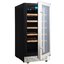 Производители предлагают винные шкафы, оснащенные одной, двумя, тремя и четырьмя камерами, которые могут располагаться как друг под другом, так бок и бок. Самые популярные — однокамерные модели, ассортимент которых особенно широк, но втором месте — двухкамерные. Над заметить, что количество камер не зависит напрямую от габаритов изделия: например, однокамерные модели увеличенных габаритов — далеко не редкость. Их высота может варьироваться в пределах от 14 см до 219 см, а ширина — от 13 см до 150 см.