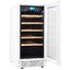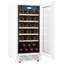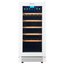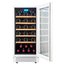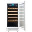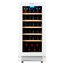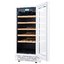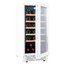 Стеклянная дверь — дополнительный изящный штрих к общему дизайну модели. Специальное покрытие защищает вино от влияния ультрафиолетовых лучей, которые проникают, если шкаф находится в солнечной комнате. Цвет корпуса — белый. Дверь можно перевесить на другую сторону, поэтому вариантов размещения его в доме становится больше.