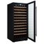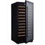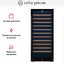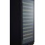 Стеклянная дверь — дополнительный изящный штрих к общему дизайну модели. Специальное покрытие защищает вино от влияния ультрафиолетовых лучей, которые проникают, если шкаф находится в солнечной комнате. Цвет корпуса — черный. Дверь можно перевесить на другую сторону, поэтому вариантов размещения его в доме становится больше.
