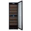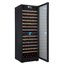 Стеклянная дверь — дополнительный изящный штрих к общему дизайну модели. Специальное покрытие защищает вино от влияния ультрафиолетовых лучей, которые проникают, если шкаф находится в солнечной комнате. Цвет корпуса — черный. Дверь можно перевесить на другую сторону, поэтому вариантов размещения его в доме становится больше.