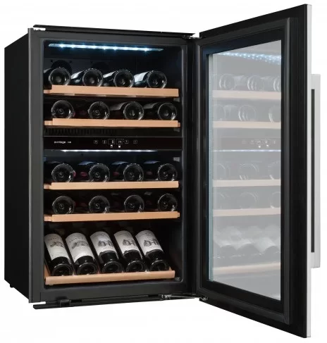 Винный шкаф Avintage имеет две зоны с одинаковым диапазоном температур — 5-18 градусов. Вы можете установить его отдельно или встроить в нишу. Принудительная вентиляция и система антивибрации поддерживают стабильный климат в камере.