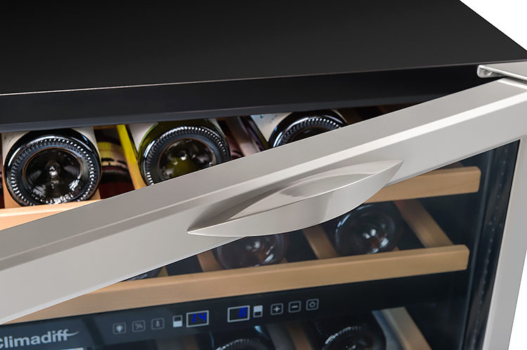 Стеклянная дверца винного шкафа — опция, которая решает сразу несколько задач. Прежде всего, она обеспечивает хороший обзор, позволяет контролировать коллекцию и демонстрировать ее, не открывая дверцу и не нарушая температурный режим. Стекло не только позволяет изолировать вино от наружного воздуха, но и не пропускает посторонние запахи. Прямые солнечные лучи также отрицательно влияют на качество вина, вызывая окисление танина — соединения, которое в нем содержится, и напиток становится горьким. Стеклянные дверцы снабжаются фильтрами или покрытием, защищающим бутылки по ультрафиолета. Способы защиты могут быть самыми разными — от наклеенной пленки до специального напыления. Иногда в дверцу устанавливается зеркальное стекло, в других случаях на него наносят тонировку в технике шелкографии.
