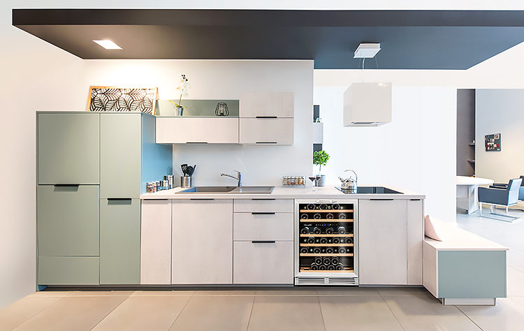 Встраиваемые холодильники для вина оснащаются специальной системой вентиляции: охлаждающая система у них находится в нижней части корпуса спереди. На такие устройства не навешивается мебельный фасад: дверца с затемненным стеклом остается на виду и открывается на достаточно широкий угол для свободного выдвижения деревянных полок.
