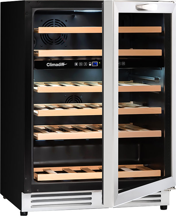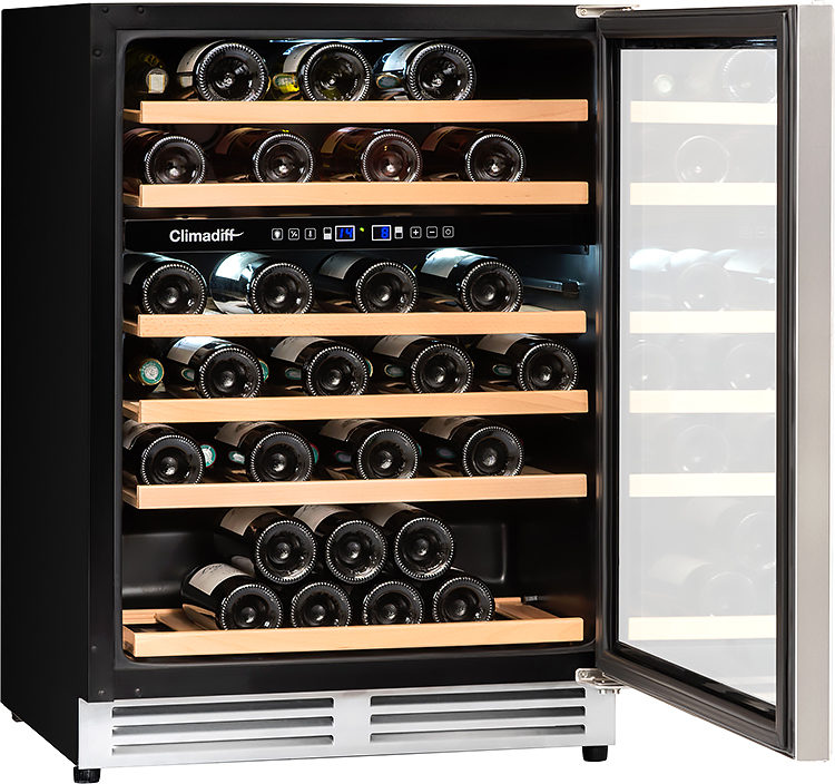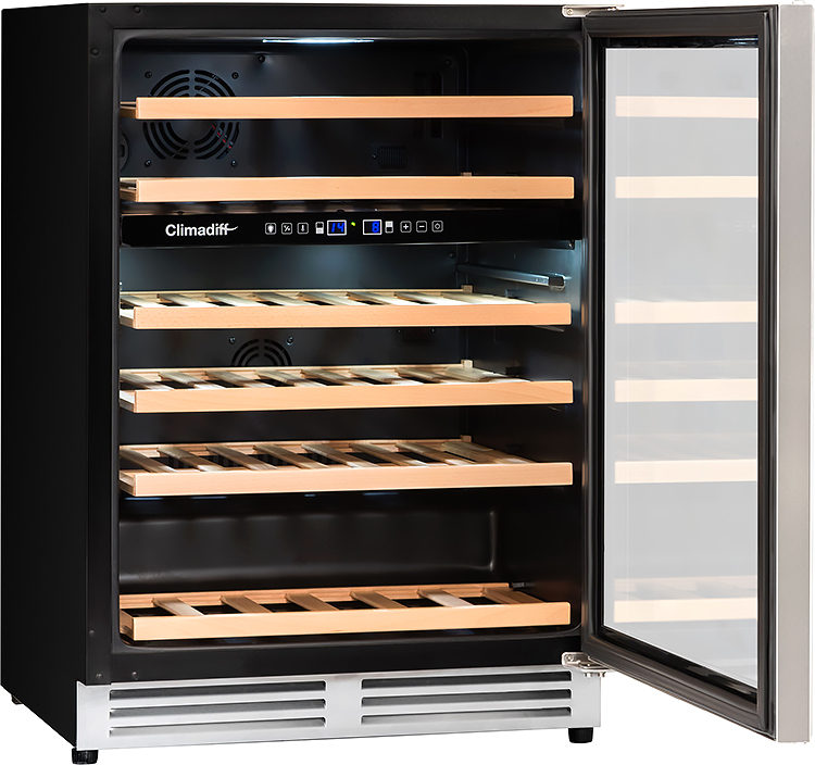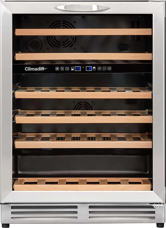Двухзонный шкаф для вина Climadiff CBU51D1X объёмом на 51 бутылку (16+35) стандартного размера поможет сохранить вашу винную коллекцию в оптимальных условиях. Диапазон температуры хранения,