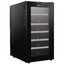 Стеклянная дверь — дополнительный изящный штрих к общему дизайну модели. Специальное покрытие защищает вино от влияния ультрафиолетовых лучей, которые проникают, если шкаф находится в солнечной комнате. Цвет корпуса — черный.