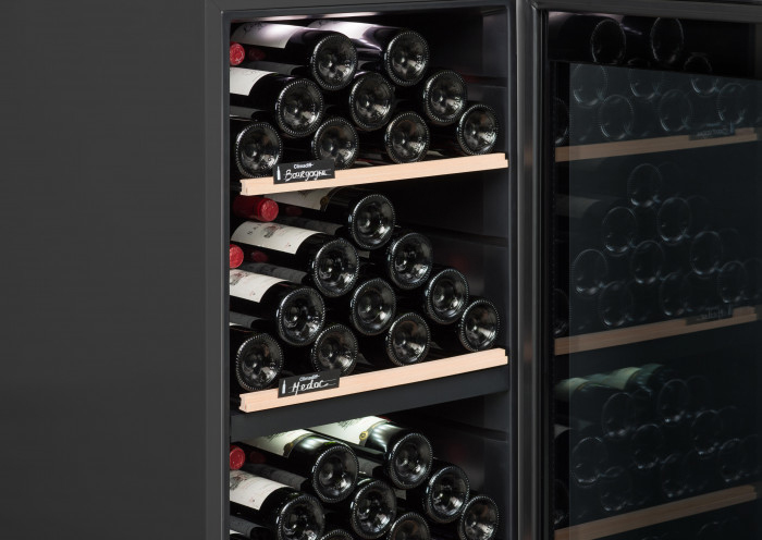 Двухтемпературные предназначены для хранения в разных условиях красного и белого вина. Трехтемпературные — для белого, красного, игристого. Мульти — система хранения из более чем трех зон с разным климатом.