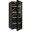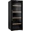 Стеклянная дверь — дополнительный изящный штрих к общему дизайну модели. Специальное покрытие защищает вино от влияния ультрафиолетовых лучей, которые проникают, если шкаф находится в солнечной комнате. Хранение становится еще безопаснее и герметичнее благодаря нескольким слоям стекол. Цвет корпуса — черный.