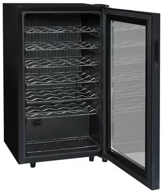 Стандартная вместительность рассчитывается по количеству бутылок «Бордо» 0,75 л. Это число также показывает максимальную загрузку при полной комплектации (полок, ящиков и других элементов).