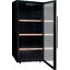 Стеклянная дверь — дополнительный изящный штрих к общему дизайну модели. Специальное покрытие защищает вино от влияния ультрафиолетовых лучей, которые проникают, если шкаф находится в солнечной комнате. Цвет корпуса — черный.
