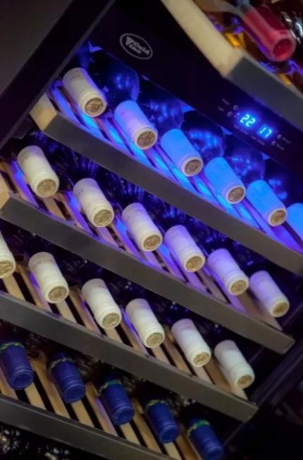 Кнопки для управления подсветкой выносятся на панель управления. Лампы синего, белого или голубого цветов могут располагаться в верхней части камеры или на боковых сторонах. Дополнительное освещение может устанавливаться в винных холодильниках с зоной для сервировки: она обеспечивает лучший обзор и доступ при подготовке вина к подаче.