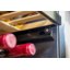 Полки в винных шкафах позволяют размещать бутылки для хранения в горизонтальном положении. Это необходимо, чтобы пробка постоянно смачивалась жидкостью и не пересыхала. Плотно закрытая пробка гарантирует, что внутрь бутылки не проникнет наружный воздух. Кислород, содержащийся в воздухе, может стать причиной ухудшения вкуса вина и даже его скисания. Кроме того, горизонтальное положение позволяет лучше оценить количество осадка. Материал изготовления полок выбирается, исходя из требований, предъявляемых к содержанию коллекции вин. Одним из основных требования является отсутствие или максимальное сокращение вибрации и хорошая фиксация бутылок на месте хранения. Даже если полка выдвигается, бутылки должны оставаться на своем месте. Второе требование исключает применение стеклянных полок, как в обычном холодильнике: на них почти невозможно зафиксировать бутылки.