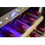 Кнопки для управления подсветкой выносятся на панель управления. Лампы синего, белого или голубого цветов могут располагаться в верхней части камеры или на боковых сторонах. Дополнительное освещение может устанавливаться в винных холодильниках с зоной для сервировки: она обеспечивает лучший обзор и доступ при подготовке вина к подаче.