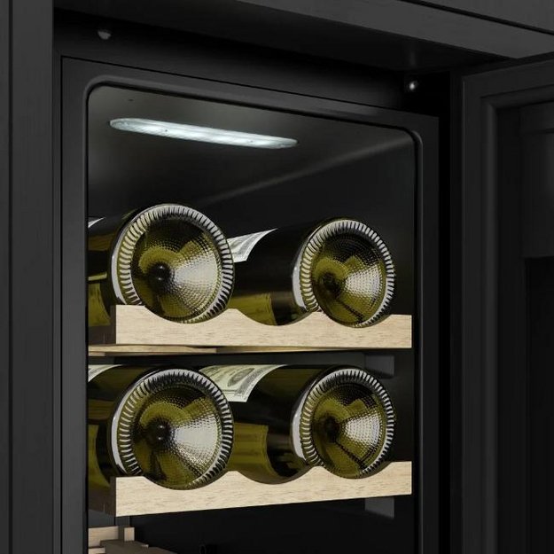Внутреннее освещение в винных шкафах обеспечивает оптимальный обзор вин, находящихся на полках, и гарантирует при этом их полную сохранность. Известно, что любое ультрафиолетовое излучение негативно отражается на качестве вина: именно поэтому стекло в дверце снабжается УФ-фильтрами и защитной пленкой. Подсветка должна удовлетворять этим же требованиям, так что в большинстве устройств в камерах устанавливаются светодиодные светильники, которые, кроме того, потребляют очень малое количество электроэнергии и отличаются долговечностью. Во время работы LED-лампы не нагреваются, так что температура в камере также остается неизменной. Многие шкафы оснащаются функциями плавного включения и выключения освещения и изменения его яркости, а также функцией автоматического отключения через 10-15 секунд после закрытия дверцы.
