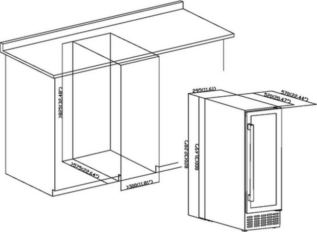 Высота встраиваемых винных шкафов может варьироваться примерно в таком же диапазоне. Стандартные размеры встраиваемых винных шкафов должна соответствовать габаритам мебели, так что высота их может быть несколько меньше, чем у отдельно стоящих моделей.