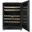 Стеклянная дверь — дополнительный изящный штрих к общему дизайну модели. Специальное покрытие защищает вино от влияния ультрафиолетовых лучей, которые проникают, если шкаф находится в солнечной комнате. Цвет корпуса — черный.