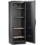Глухая дверь без стекла надежно защищает вино от влияния ультрафиолетовых лучей, которые проникают, если шкаф находится в солнечной комнате. Это гарантирует также герметичное хранение. Цвет корпуса — черный. Дверь можно перевесить на другую сторону, поэтому вариантов размещения его в доме становится больше.