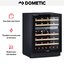 Стеклянная дверь позволяет следить за показателями на внутренней панели управления, при этом она не пропускает вредные для алкоголя ультрафиолетовые лучи, так как имеет специальное защитное покрытие. На цифровом дисплее отображается фактическая температура в обеих зонах.