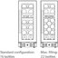 Стандартная вместительность рассчитывается по количеству бутылок «Бордо» 0,75 л. Это число также показывает максимальную загрузку при полной комплектации (полок, ящиков и других элементов).
