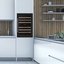 Встраиваемые холодильники для вина оснащаются специальной системой вентиляции: охлаждающая система у них находится в нижней части корпуса спереди. На такие устройства не навешивается мебельный фасад: дверца с затемненным стеклом остается на виду и открывается на достаточно широкий угол для свободного выдвижения деревянных полок.
