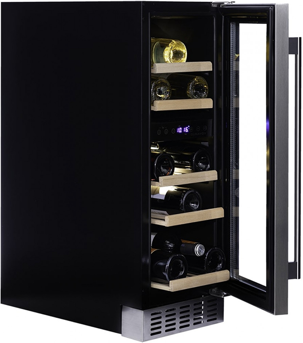 Стеклянная дверца винного шкафа — опция, которая решает сразу несколько задач. Прежде всего, она обеспечивает хороший обзор, позволяет контролировать коллекцию и демонстрировать ее, не открывая дверцу и не нарушая температурный режим. Стекло не только позволяет изолировать вино от наружного воздуха, но и не пропускает посторонние запахи. Прямые солнечные лучи также отрицательно влияют на качество вина, вызывая окисление танина — соединения, которое в нем содержится, и напиток становится горьким. Стеклянные дверцы снабжаются фильтрами или покрытием, защищающим бутылки по ультрафиолета. Способы защиты могут быть самыми разными — от наклеенной пленки до специального напыления. Иногда в дверцу устанавливается зеркальное стекло, в других случаях на него наносят тонировку в технике шелкографии.