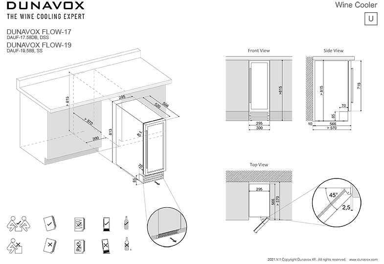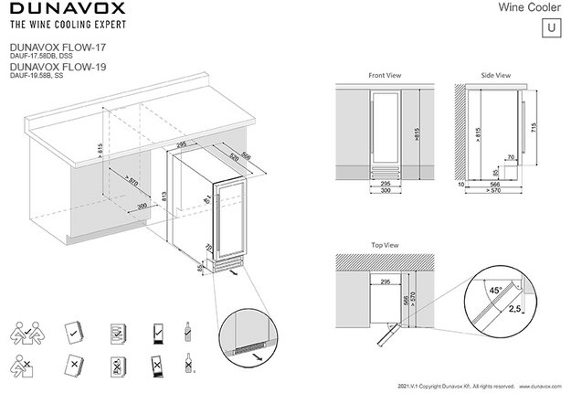 Возможность перенавешивания двери значительно расширяет возможности размещения винного шкафа Dunavox в помещении. В зависимости от расположения холодильника в вашем интерьере вы можете переместить петли на противоположную сторону при необходимости для удобства эксплуатации.