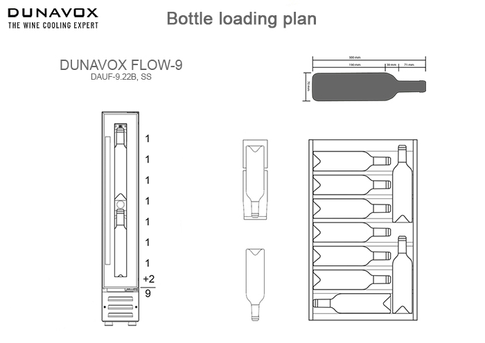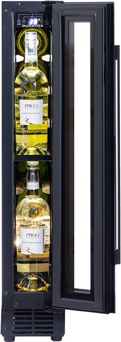 Винный холодильник Dunavox DAUF-9.22MB имеет одну температурную зону, в которой можно разместить бутылки и единовременно выставить только одну комбинацию настроек. Он встраивается в нишу, что удобно, если у вас ограничен метраж помещения. Благодаря компактным размерам данная модель — отличный выбор для офиса, гостиничного номера. Количество бутылок, которое можно разместить с учетом полной комплектации и из расчета объема бутылки 0,75 л, — 9 шт.