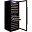 Стеклянная дверь — дополнительный изящный штрих к общему дизайну модели. Специальное покрытие защищает вино от влияния ультрафиолетовых лучей, которые проникают, если шкаф находится в солнечной комнате. Хранение становится еще безопаснее и герметичнее благодаря нескольким слоям стекол. Цвет корпуса — черный матовый. Дверь можно перевесить на другую сторону, поэтому вариантов размещения его в доме становится больше.