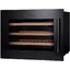 Встраиваемые холодильники для вина оснащаются специальной системой вентиляции: охлаждающая система у них находится в нижней части корпуса спереди. На такие устройства не навешивается мебельный фасад: дверца с затемненным стеклом остается на виду и открывается на достаточно широкий угол для свободного выдвижения деревянных полок.