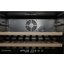 Встраиваемые холодильники для вина оснащаются специальной системой вентиляции: охлаждающая система у них находится в нижней части корпуса спереди. На такие устройства не навешивается мебельный фасад: дверца с затемненным стеклом остается на виду и открывается на достаточно широкий угол для свободного выдвижения деревянных полок.