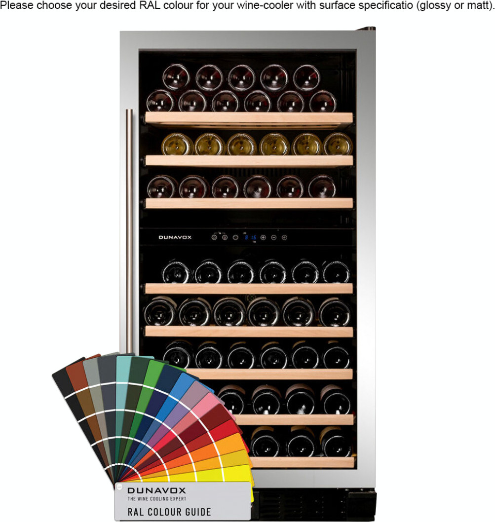 Всегда популярными остаются и универсальные цвета, особенно черный: белые корпуса винных шкафов можно найти в каталогах значительно реже. Черные корпуса могут изготавливаться как из металла, так и из дерева. Достаточно велик ассортимент винных холодильников в корпусах серого цвета и оттенка нержавеющей стали, которые сочетаются с любыми другими тонами и уместны а интерьерах как классического, так и современного стиля. Интересны изделия в корпусах «металлических» оттенков: серебряного, золотого, бронзового. Эффектно смотрятся модели, где детали золотого и бронзового цветов сочетаются с теплыми тонами натурального дерева.