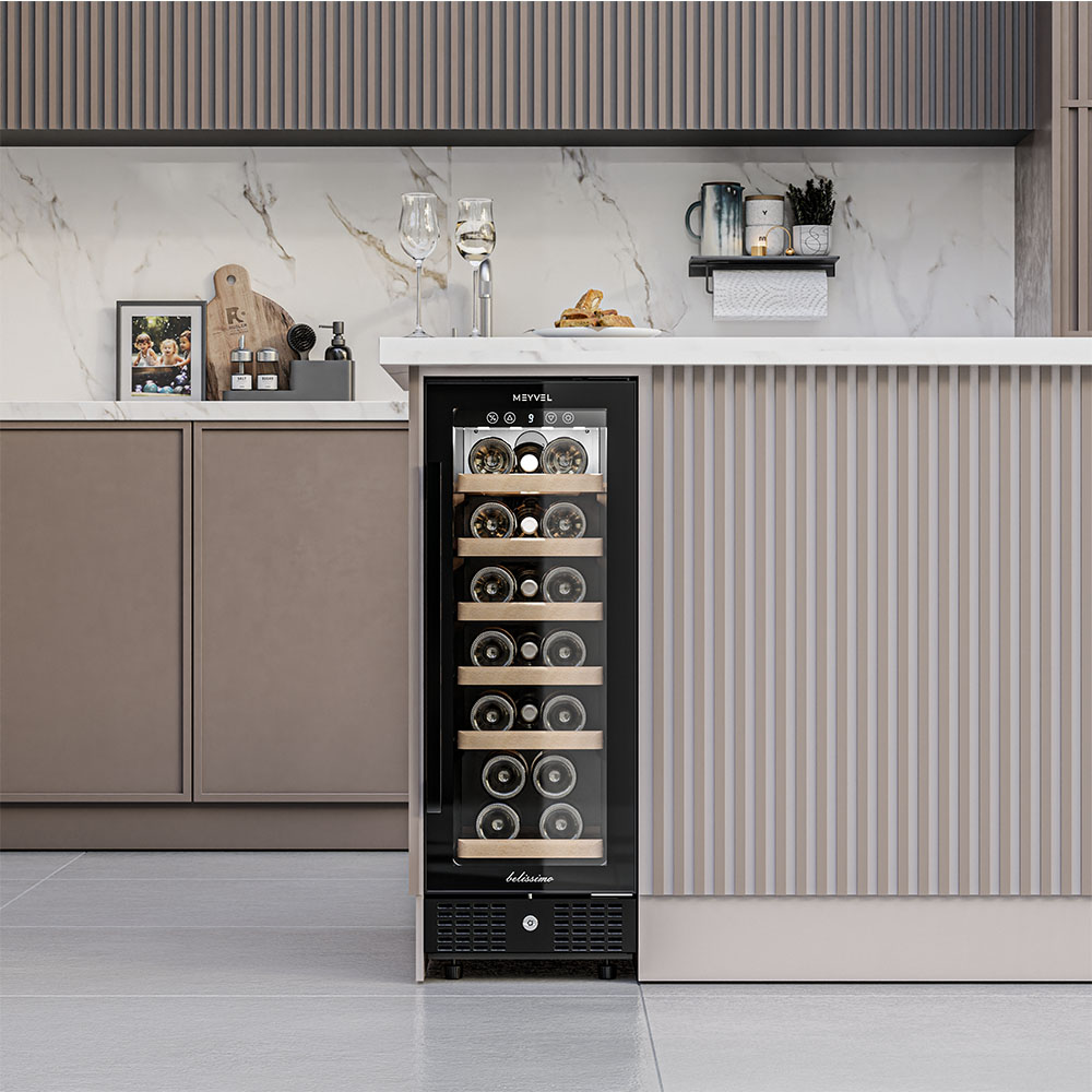 Винный холодильник Meyvel MV19BIG-KBT1 имеет одну температурную зону, в которой можно разместить бутылки и единовременно выставить только одну комбинацию настроек. Он устанавливается отдельно, что удобно, если у вас есть специальное помещение — кладовая, погреб и т.д. Благодаря компактным размерам данная модель — отличный выбор для офиса, гостиничного номера. Количество бутылок, которое можно разместить с учетом полной комплектации и из расчета объема бутылки 0,75 л, — 19 шт.