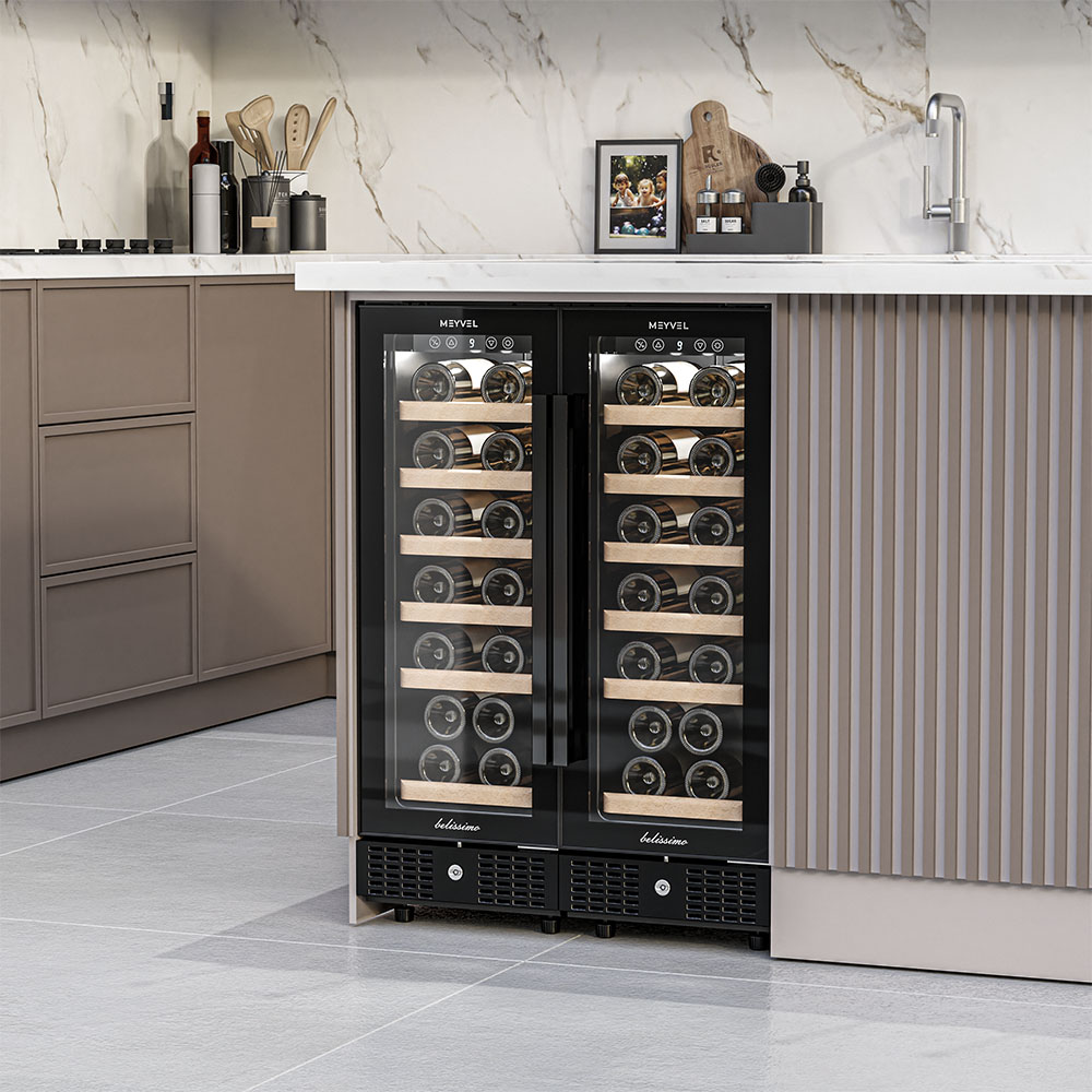 Предусмотренная система вентиляции винных шкафов Meyvel позволяет принудительно циркулировать потоки воздуха. Благодаря этому даже заполненных холодильник не образует зон с повышенной температурой, смешивая потоки и равномерно распределяя их по пространству.