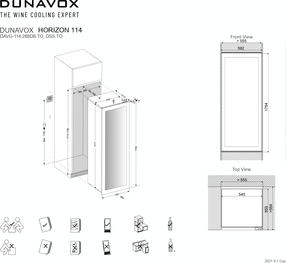 Некоторые отдельно стоящие винные шкафы, а также модели, встраиваемые в мебельную колонну, шкаф или другое закрытое пространство, оснащаются системой забора воздуха и вентиляционной решеткой, расположенными спереди в нижней части корпуса. Зазоры между корпусом шкафа и стенками мебели необходимы и в этом случае.