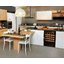 Встраиваемые холодильники для вина оснащаются специальной системой вентиляции: охлаждающая система у них находится в нижней части корпуса спереди. На такие устройства не навешивается мебельный фасад: дверца с затемненным стеклом остается на виду и открывается на достаточно широкий угол для свободного выдвижения деревянных полок.