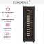 Вместимость составляет 89 бутылок по 0,75 л, внутри предусмотрено 14 выдвижных полок для систематизации коллекции. Полки выдвигаются плавно и открывают быстрый доступ к любой позиции, что удобно при выборе вина для дегустации или сервировки. Стеклопакет в рамке дверцы уменьшает потери холода и защищает содержимое от пыли, предоставляя при прекрасный обзор ваших запасов.
