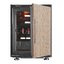 Дверца у большинства винных шкафов изготавливается из многослойного тонированного стекла. Такой материал, с одной стороны, позволяет оценивать коллекцию вин визуально, не открывая дверцу, в условиях стабильной температуры и влажности. С другой стороны, затемненное стекло с УФ-фильтром в виде напыления или специальной пленки надежно изолирует винные бутылки негативного воздействия ультрафиолетового излучения. Несколько слоев стекла обеспечивают при этом дополнительную защиту. Очень часто стекло в дверце заключается в рамку из дерева или металла. Натуральный или окрашенный металл или дерево не только способствуют прочности конструкции, но и превращают винный холодильник, особенно отдельно стоящий, в эффектный элемент обстановки.