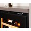 Современные винные шкафы всех типов, в том числе компрессорные, темоэлектрические и абсорбционные, оснащаются электронной системой управления — кнопочной или сенсорной. Панель управления, с помощью которой производится регулировка параметров работы, может размещаться внутри винного шкафа за дверцей или снаружи в верхней части корпуса. Второй вариант более удобен, поскольку для изменения параметров не нужно открывать дверцу. Кроме того, такое расположение панели управления позволяет поддерживать более стабильную температуру в камере. Однако для больших винных шкафов в классическом стиле из ценных пород дерева предпочтительнее скрытая панель управления, которая не портит их внешний вид.