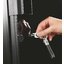 Замок в винных шкафах предназначается для предотвращения нежелательного доступа — в частности, для защиты винной коллекции от детей. Механический замок может располагаться на дверце, как у обычного шкафа или сейфа. Если же дверца холодильника полностью изготовлена из стекла, замок может находиться на цокольной решетке. Такие замки комплектуются набором ключей. Иногда на дверце устанавливаются электронные замки, открыть которые можно при помощи комбинации кнопок или при помощи чипа. Выбрать шкаф с замком можно как для установки в баре или кафе, так и для домашнего использования.