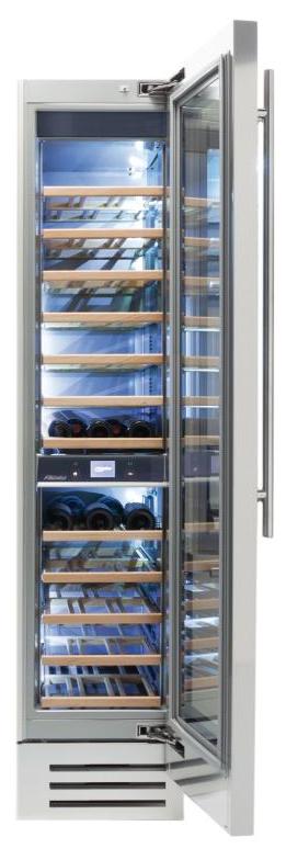 Винный холодильник Fhiaba KS450FW6 имеет две температурные зоны, в которых одновременно можно хранить разные сорта алкоголя и выставлять разные сочетания настроек. Он встраивается в нишу, что удобно, если у вас ограничен метраж помещения. Количество бутылок, которое можно разместить с учетом полной комплектации и из расчета объема бутылки 0,75 л, — 52 шт.